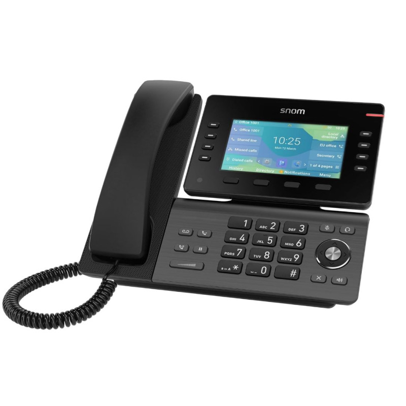 The D862 is a beautifully designed entry-level device in the Snom D8xx series. Its clear design makes it ideal for any desk. Equipped with a beautiful, 40° continuously adjustable LC display of 5” size, it offers a very good overview, regardless of the lighting situation at the workplace. The 8 freely programmable function keys are ideal for storing speed dials or call groups.